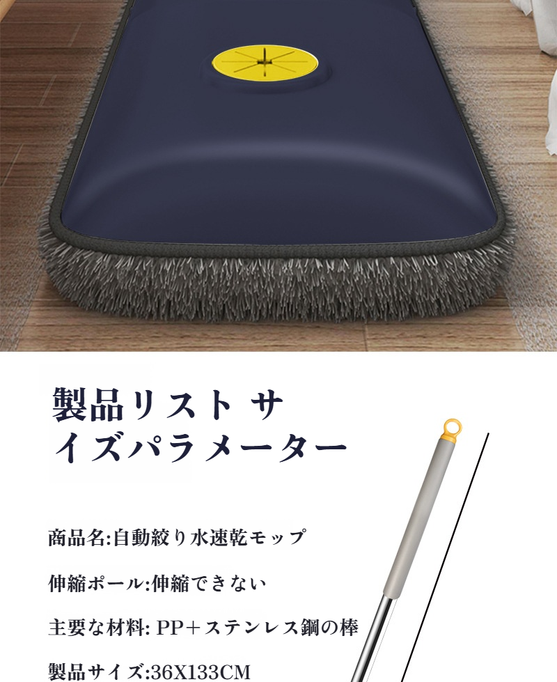 自動ねじれ水なし手洗いフラットモップ全体画像
