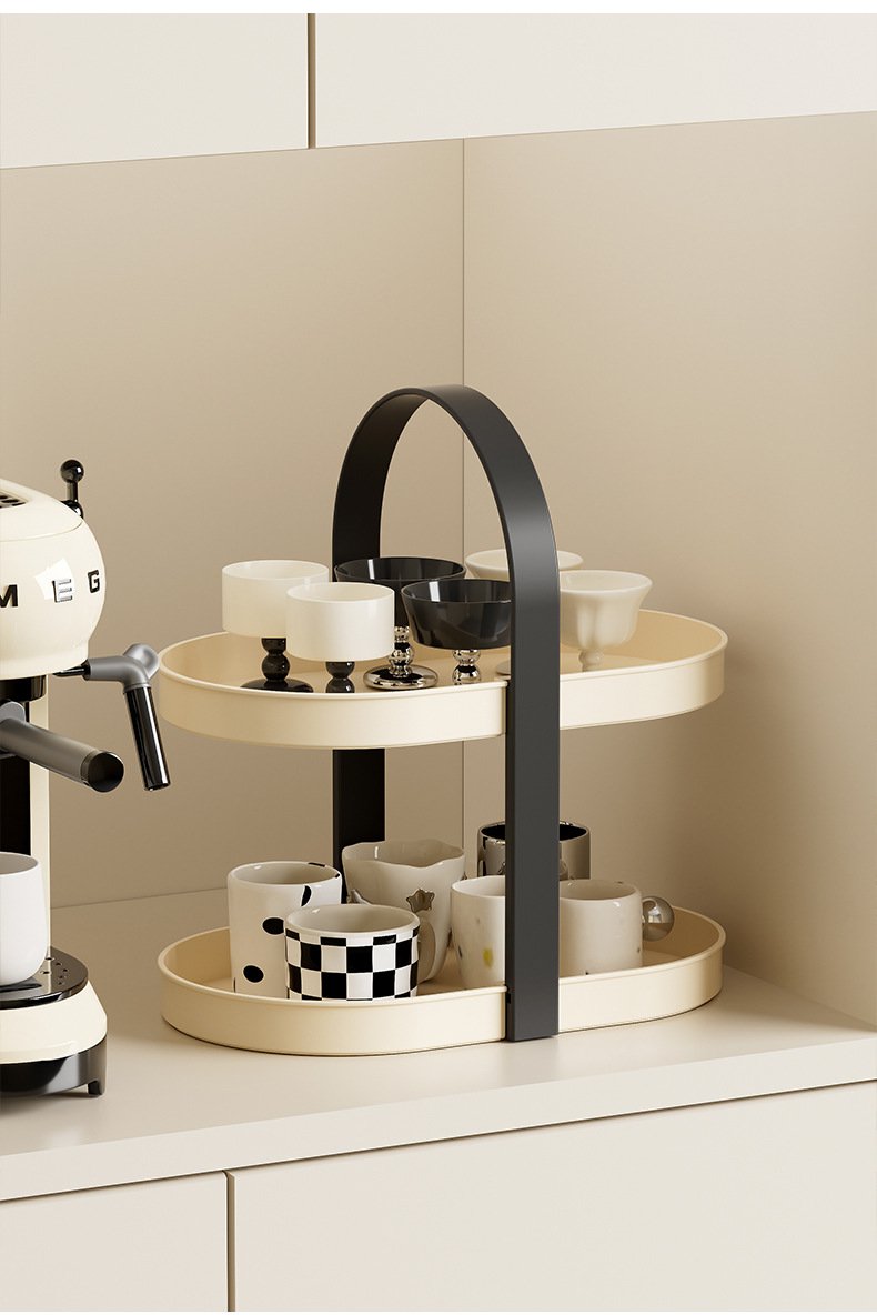 ティーカップマグコーヒーカップデスクトップティーテーブルカップホルダー防塵軽量高級シンプル多層パンチフリーフロア収納ラック